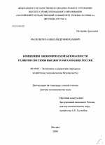 Концепция экономической безопасности развития системы высшего образования России тема диссертации по экономике, полный текст автореферата