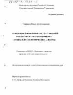 Концепция управления государственной собственностью в корпорациях тема диссертации по экономике, полный текст автореферата