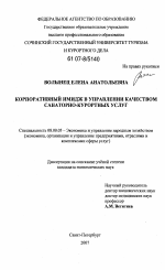 Корпоративный имидж в управлении качеством санаторно-курортных услуг тема диссертации по экономике, полный текст автореферата