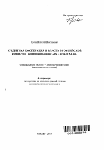 Автореферат диссертации по теме "Кредитная кооперация и власть в Российской Империи во второй половине XIX - начале XX вв."