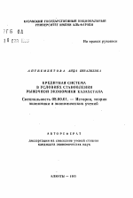 Кредитная система в условиях становления рыночной экономики Казахстана тема диссертации по экономике, полный текст автореферата