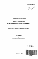 Диссертационная работа выпонена в соответствие с п. 1.1. -Политическая экономия (структура и закономерности развития экономических отношений) специальности 08.00.01 - Экономическая теория Паспорта специальностей ВАК по экономическим наукам.