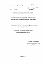 Логистическая модернизация складов ресурсообеспечивающих предприятий тема диссертации по экономике, полный текст автореферата