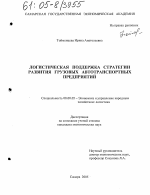 Логистическая поддержка стратегии развития грузовых автотранспортных предприятий тема диссертации по экономике, полный текст автореферата