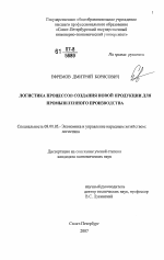 Логистика процессов создания новой продукции для промышленного производства тема диссертации по экономике, полный текст автореферата