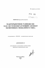 Макрорыночное равновесие как системообразующий элемент экономики смешанного типа тема диссертации по экономике, полный текст автореферата