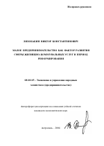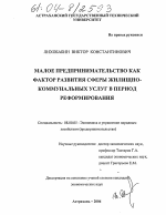 Малое предпринимательство как фактор развития сферы жилищно-коммунальных услуг в период реформирования тема диссертации по экономике, полный текст автореферата