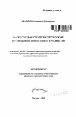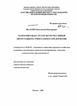 Маркетинговая стратегия регрессивной интеграции на трикотажном предприятии тема диссертации по экономике, полный текст автореферата