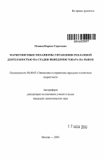 Маркетинговые механизмы управления рекламной деятельностью на стадии выведения товара на рынок тема диссертации по экономике, полный текст автореферата