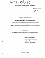 Математическое моделирование развития малого бизнеса в регионах России тема диссертации по экономике, полный текст автореферата