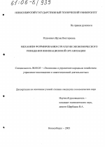 Автореферат диссертации по теме "Механизм формирования стратегии экономического поведения инновационной организации"