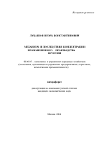 Механизм и последствия концентрации промышленного производства в России тема диссертации по экономике, полный текст автореферата