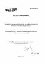 Механизм обеспечения экономической безопасности региона Российской Федерации тема диссертации по экономике, полный текст автореферата