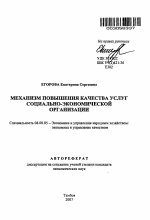 Механизм повышения качества услуг социально-экономической организации тема диссертации по экономике, полный текст автореферата