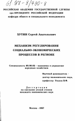 Механизм регулирования социально-экономических процессов в регионе тема диссертации по экономике, полный текст автореферата