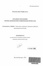 Механизм управления региональными инвестиционными проектами тема диссертации по экономике, полный текст автореферата