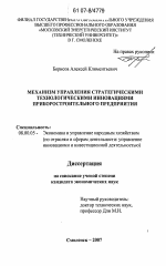 Механизм управления стратегическими технологическими инновациями приборостроительного предприятия тема диссертации по экономике, полный текст автореферата
