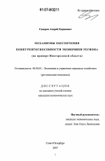 Механизмы обеспечения конкурентоспособности экономики региона тема диссертации по экономике, полный текст автореферата