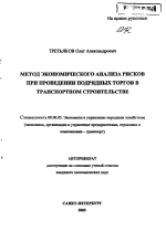 Метод экономического анализа рисков при проведении подрядных торгов в транспортном строительстве тема диссертации по экономике, полный текст автореферата