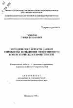 Методические аспекты оценки и проблемы повышения эффективности в энергетическом строительстве тема диссертации по экономике, полный текст автореферата