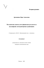 Методические аспекты учета финансовых результатов в пассажирских автотранспортных организациях тема диссертации по экономике, полный текст автореферата