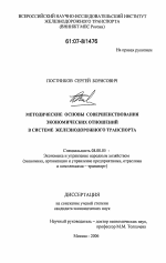 Методические основы совершенствования экономических отношений в системе железнодорожного транспорта тема диссертации по экономике, полный текст автореферата