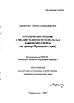Методические подходы к анализу развития региональных банковских систем тема диссертации по экономике, полный текст автореферата