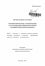 Методические подходы к формированию и реализации инвестиционной политики в машиностроительном комплексе тема диссертации по экономике, полный текст автореферата