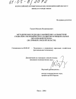 Методические подходы к выявлению асимметрии социально-экономического развития муниципальных образований региона тема диссертации по экономике, полный текст автореферата