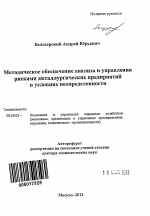 Автореферат диссертации по теме "Методическое обеспечение анализа и управления рисками металургических предприятий в условиях неопределенности"