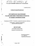 Методическое обеспечение реализации инвестиционных проектов на концессионной основе тема диссертации по экономике, полный текст автореферата