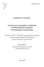 Методология адаптивного управления организационным развитием промышленного предприятия тема диссертации по экономике, полный текст автореферата