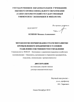 Методология формирования стратегии развития промышленного предприятия в условиях разделения собственности и управления тема диссертации по экономике, полный текст автореферата