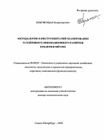 Методология и инструментарий планирования устойчивого инновационного развития предприятий ОПК тема диссертации по экономике, полный текст автореферата