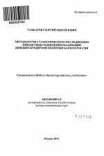 Методология статистического исследования финансовых рынков при реализации денежно-кредитной политики банком России тема диссертации по экономике, полный текст автореферата