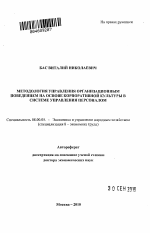 Методология управления организационным поведением на основе корпоративной культуры в системе управления персоналом тема диссертации по экономике, полный текст автореферата