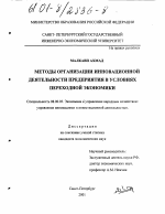 Методы организации инновационной деятельности предприятия в условиях переходной экономики тема диссертации по экономике, полный текст автореферата