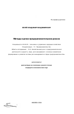 Методы оценки предпринимательских рисков тема диссертации по экономике, полный текст автореферата