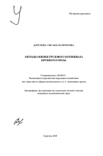 Методы оценки трудового потенциала крупного города тема диссертации по экономике, полный текст автореферата