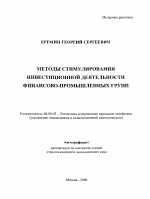 Методы стимулирования инвестиционной деятельности финансово-промышленных групп тема диссертации по экономике, полный текст автореферата
