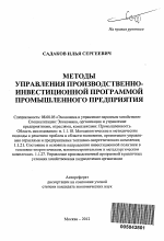 Методы управления производственно-инвестиционной программой промышленного предприятия тема диссертации по экономике, полный текст автореферата