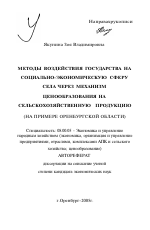 Автореферат диссертации по теме "Методы воздействия государства на социально-экономическую сферу села через механизм ценообразования на сельскохозяйственную продукцию"