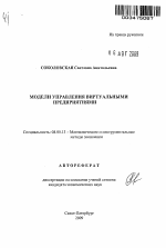 Модели управления виртуальными предприятиями тема диссертации по экономике, полный текст автореферата