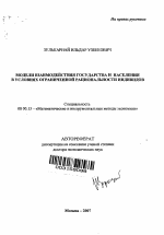 Модели взаимодействия государства и населения в условиях ограниченной рациональности индивидов тема диссертации по экономике, полный текст автореферата