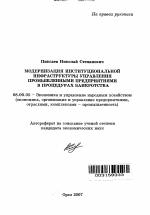 Модернизация институциональной инфраструктуры управления промышленными предприятиями в процедурах банкротства тема диссертации по экономике, полный текст автореферата