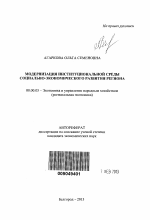 Модернизация институциональной среды социально-экономического развития региона тема диссертации по экономике, полный текст автореферата