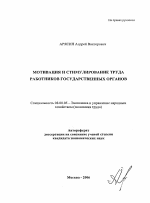 Мотивация и стимулирование труда работников государственных органов тема диссертации по экономике, полный текст автореферата
