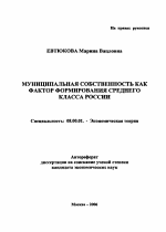Муниципальная собственность как фактор формирования среднего класса России тема диссертации по экономике, полный текст автореферата