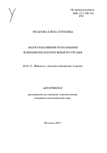 Налогообложение пользования водными биологическими ресурсами тема диссертации по экономике, полный текст автореферата