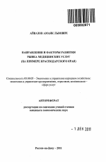 Направления и факторы развития рынка медицинских услуг тема диссертации по экономике, полный текст автореферата